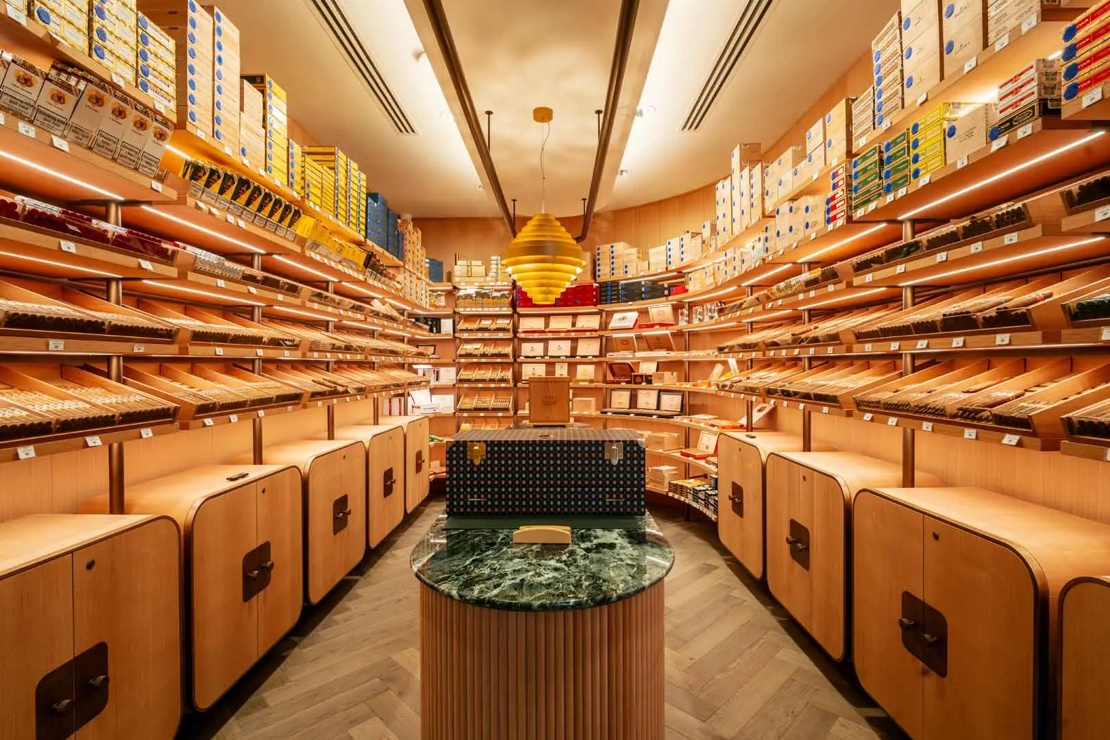 Located in the heart of St James's, the space reflects the brand's focus on precision, atmosphere, and client experience. At its centre are two bespoke walk-in humidors, crafted in Italy, forming both the architectural and functional core of the store.